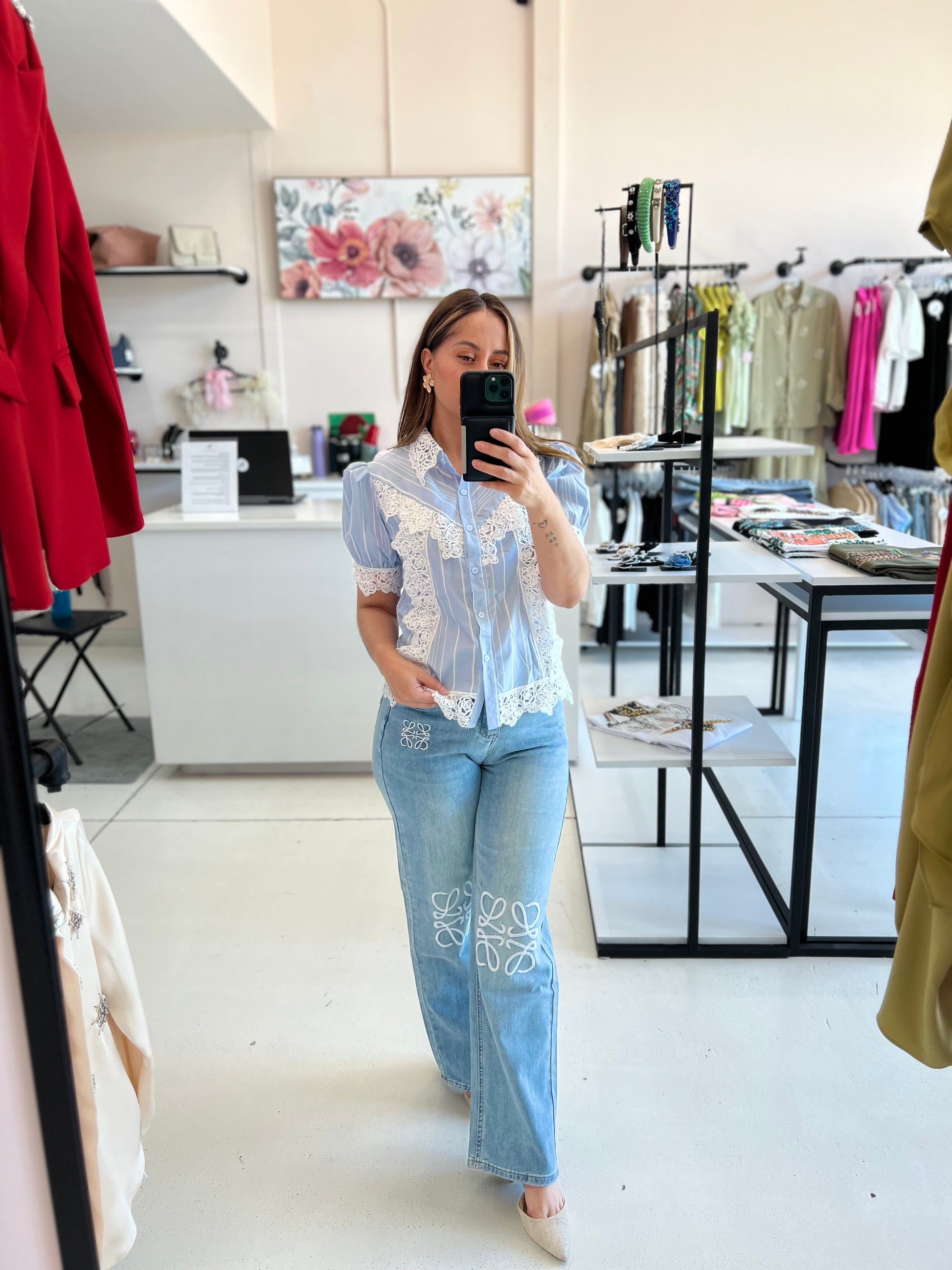 BLUSA AZUL ENCAJE