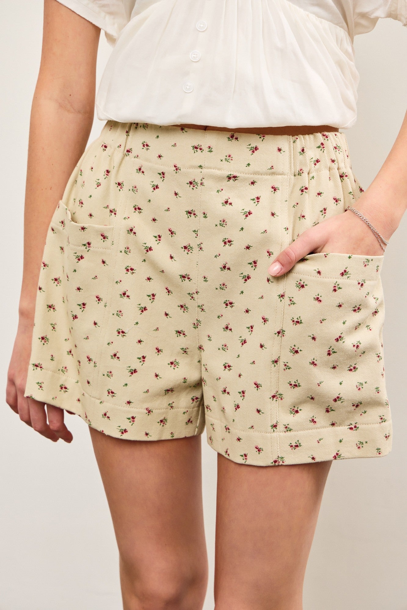 SHORT FLORAL TAUPE